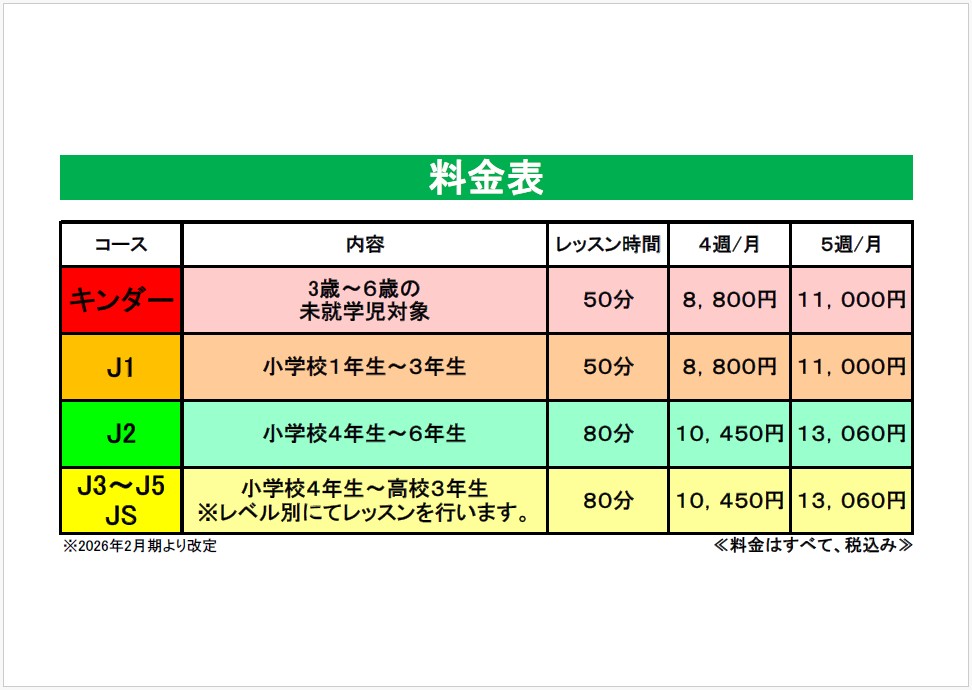 - ※レッスンは、基本的に「月4回」ですが、年に数回『5回レッスン』の月がございます。